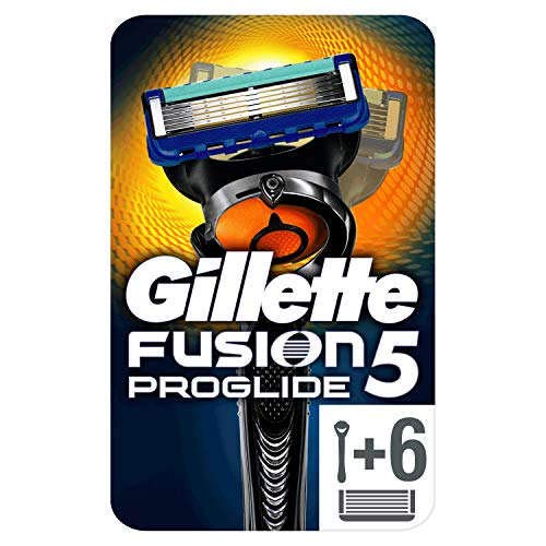 La maquinilla de afeitar Gillette Fusion ProGlide cuenta con tecnología FlexBall. Se adapta a los contornos y elimina prácticamente todo el pelo. Dispone de 5 hojas de precisión que proporcionan una comodidad increíble. ProGlide, con las hojas más finas de Gillette (las 4 primeras hojas, al igual que ProShield), reduce los tirones comparada con Fusion. Esta maquinilla de afeitar se completa con un recortador de precisión en la parte trasera, óptimo para perfilar las zonas más difíciles, como el área de debajo de la nariz y las patillas. Una cuchilla de afeitar equivale a un mes de afeitados. Esta maquinilla de afeitar Fusion ProGlide puede usarse con cualquier cuchilla de afeitar Fusion.