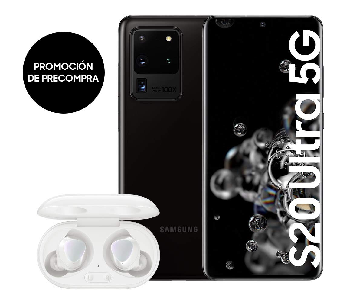 Descubre la cámara para smartphone que supera a todas las cámara s; un teléfono android que posee una cámara impresionante con gran angular de 108mp, cámara frontal de 40my cámara de teleobjetivo de 48mp; galaxy s20 ultra 5g eclipsa a cualquier teléfono móvil samsung anterior.un smartphone android con millones de píxeles más para tomas increíblemente nítidas que puedes recortar e imprimir, sin perderte ningún detalle.incluye single take, que te permite disparar hasta 10 segundos y te devuelve una amplia variedad de formatos, para que puedas elegir el mejor estilo para cada momento, sin tener que volver a disparar.la cámara de fotos más potente de un teléfono galaxy hasta ahora; la cámara de 40 megapíxeles de galaxy s20 ultra 5g te ofrece una tecnología muy avanzada; cambia a 10mcon grandes píxeles para conseguir selfies nítidas con poca luz.un smartphone libre con el zoom más avanzado de samsung; un zoom óptico híbrido que produce un zoom increíble espacial de 100x; ahora ninguna imagen estará nunca fuera de tu alcance.el samsung galaxy s20 ultra 5g es el dispositivo con el vídeo de mayor resolución en un smartphone.el vídeo 8k revoluciona la forma de capturar fotos y vídeos, y pasa de una resolución móvil de 4k a 8k; eso es 4 veces más que uhd y 16 veces más que fhd; incluso puedes sacar fotos de 33mdirectamente con el vídeo 8k.con un módem de 5g instalado, el galaxy s20 ultra 5g te permite cargar y descargar en un instante.¹ esto significa que puedes retransmitir en vivo, compartir y jugar a velocidades de 5g.las baterías del samsung galaxy s20 ultra 5g son muy potentes, con un máximo de 5.000mah (típicos)²; también son inteligentes, ya que se adaptan a tus hábitos móviles para ahorrar energía y durar más tiempo con una sola carga.el almacenamiento del galaxy s20 ultra 5g se puede ampliar con una tarjeta microsd para obtener aún más almacenamiento, hasta un total de 1,1 tb³.¹ requiere una conexión de red de 5g. ² valor típico probado en condiciones de laboratorio de terceros; la capacidad nominal (mínima) es de 4.855mah.³ la tarjeta microsd se vende por separado.
